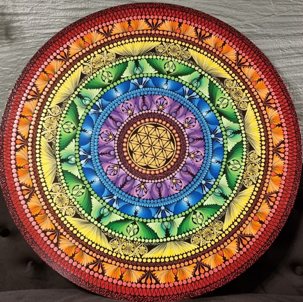 Unika mandala- och fluid art-konstverk
